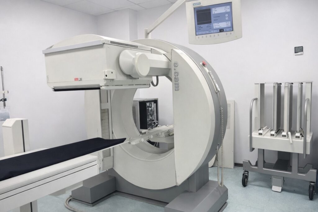 این بخش که در زمستان 1383 افتتاح شده است و به صورت یک بخش کامل و مستقل در طبقه همکف بیمارستان و در کنار درمانگاه قرار گرفته و مجهز به پیشرفته ترین دستگاه گاماکمرای اسپکت مارک زیمنس ساخت کشور آلمان می باشد و امکان تهیه اسکن های رادیوایزوتوپ متعدد از جمله اسکن قلب (تالیوم اسکن) اسکن قلب با استفاده از تست ورزش و انواع اسکن های کلیه و مثانه DMSA و DTPA ، اسکن ریه، اسکن مجاری اشکی، اسکن تیروئید، پارا تیروئید و…  انواع اسکن های استخوان جهت بررسی کانونهای متاستاز و التهاب و همکاری در تعیین غدد لنفاوی گرفتار در سرطان پستان می باشد همکاران متخصص قلب و ارتوپد و جراحی عمومی و… نیز با این بخش همکاری می کنند .